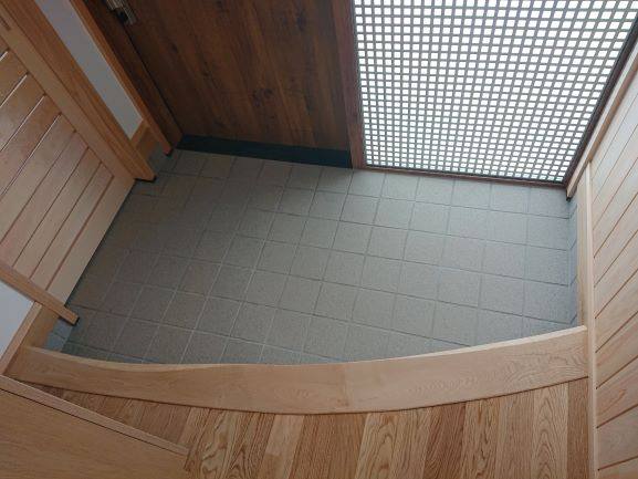 木の曲がりに沿わせて、廊下側の床材を削り、隙間なく付き合わせることを建築用語で『ひかる』と言います。