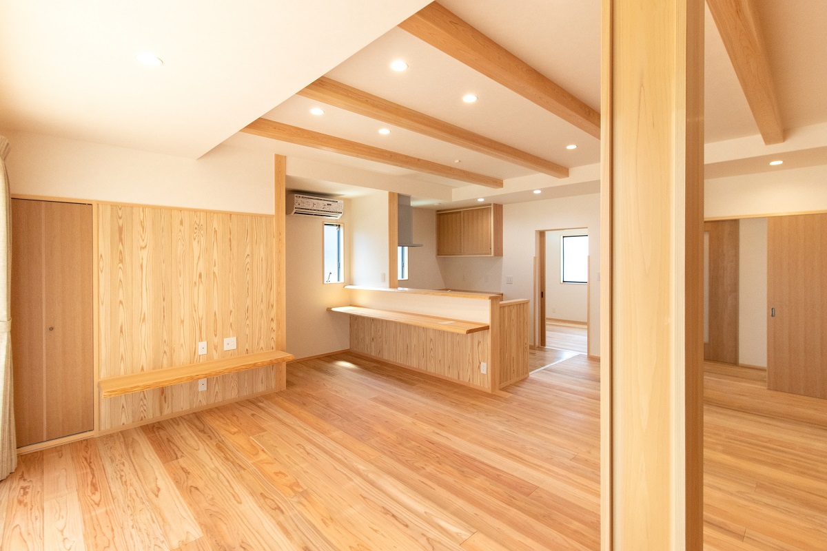 ヒノキをたくさん使って木の香りにつつまれた気持ちのいい一戸建て注文住宅は森本工務店におまかせください。