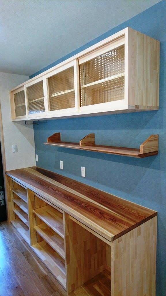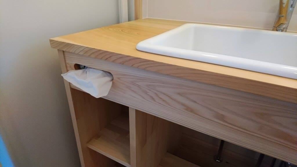 洗面カウンターに組み込んだティッシュケース入れがとても便利です!
