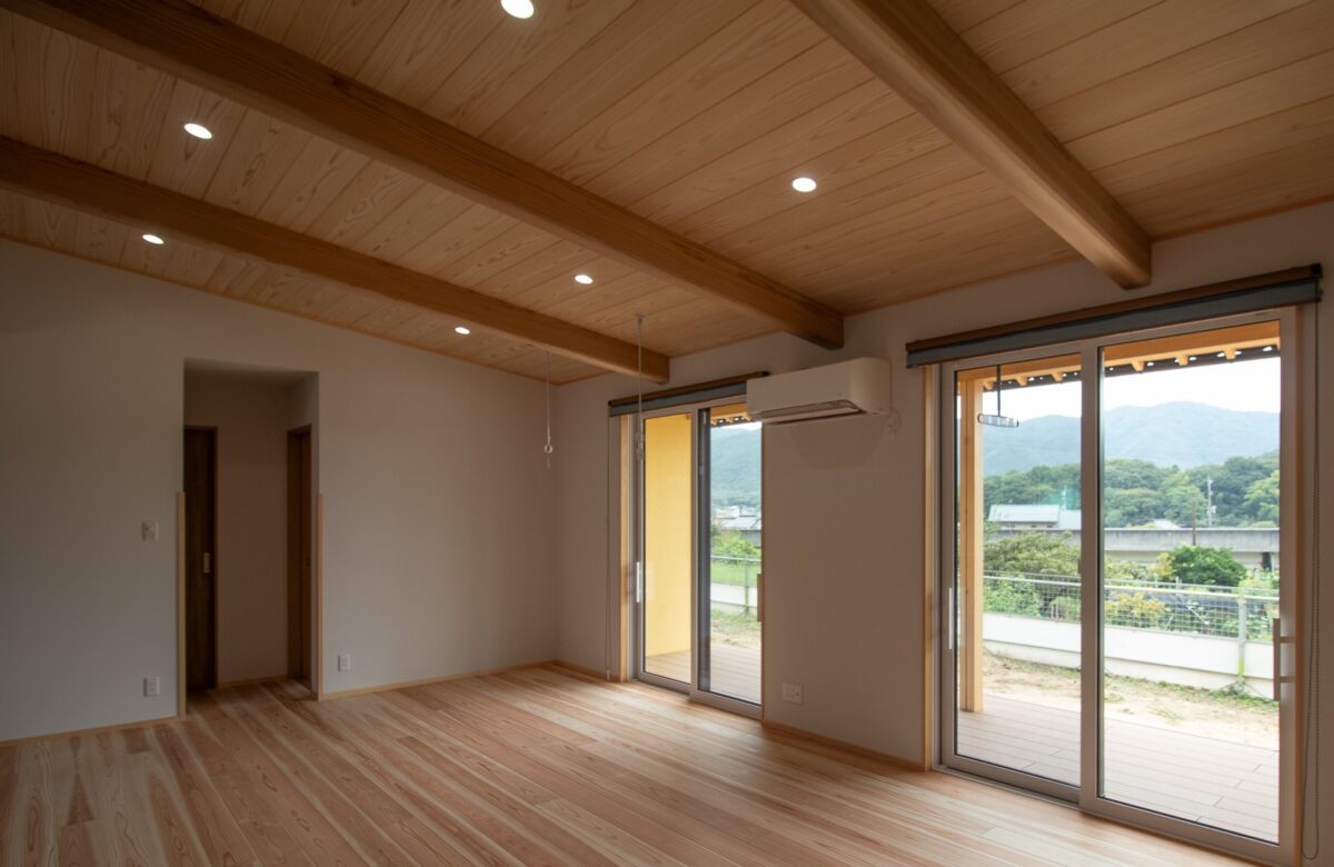 勾配天井のゆとり空間や窓から差し込む自然光など、図面では伝わらない心地よさを感じられます。