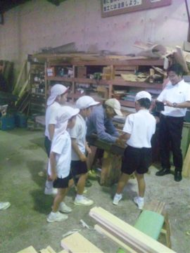 3グループ、12名が来まして、加工場では仕事の説明をして、荒木を加工して見せ、表面ザラザラがツルツルになってみんなビックリ