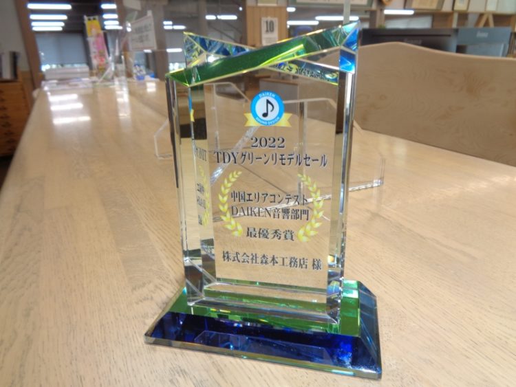 住宅の改造工事で、音楽室を施工させていただいたものを表彰されました。