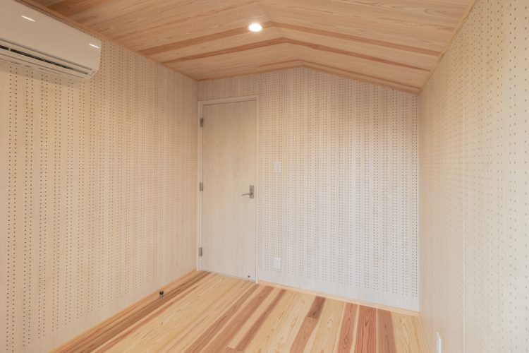 ご主人が楽器を演奏できるだけの小スペース音楽室でしたが、床と天井は無垢の杉材で