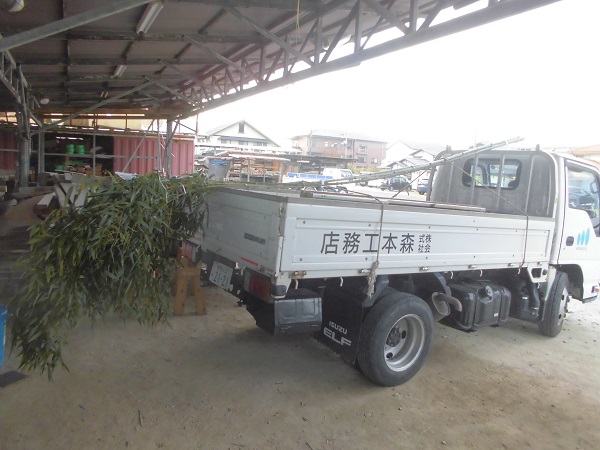 そして、地鎮祭で使用する竹を伐採し、地鎮祭に使用できる形に整えます。