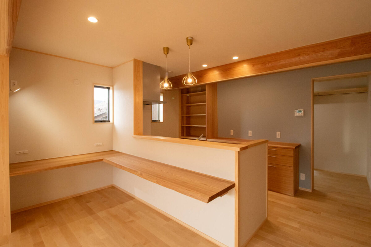 若世帯のキッチンカウンターには、広々とした造り付けカウンターも。