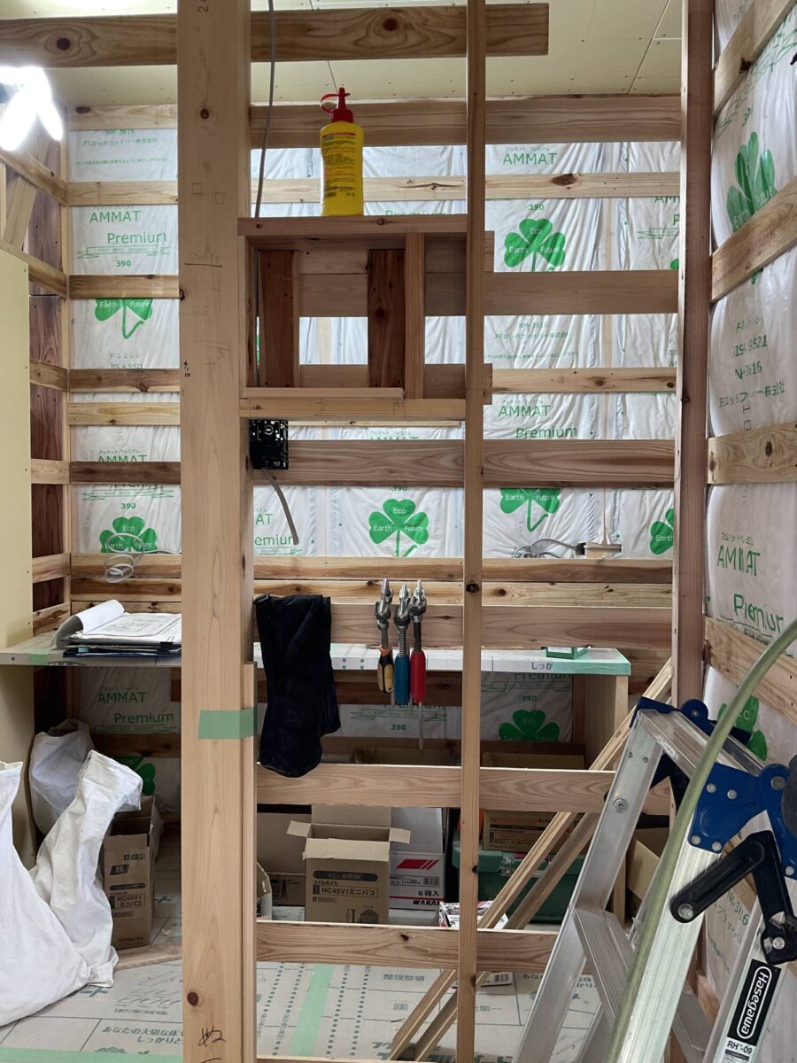 この日は大工さんが造作工事をしていました。