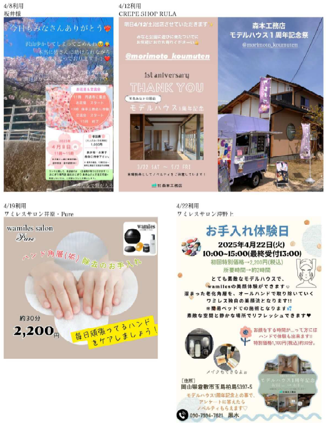 イベント期間中でなくても、モデルハウスの貸出(キッチンカーやワークショップなど)も