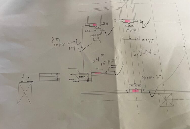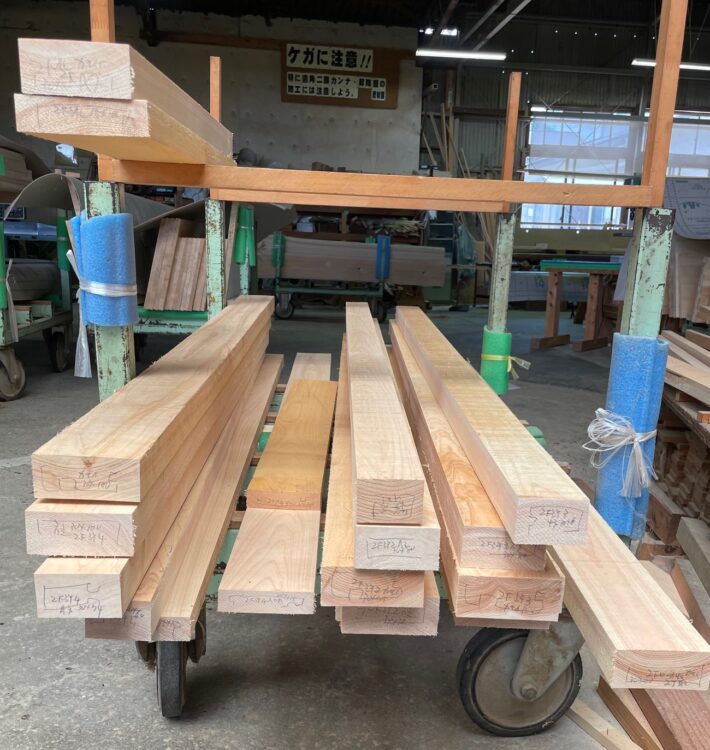まず木取りですが、加工図を元に材料を段取りしてどの様に使うか決める作業です。