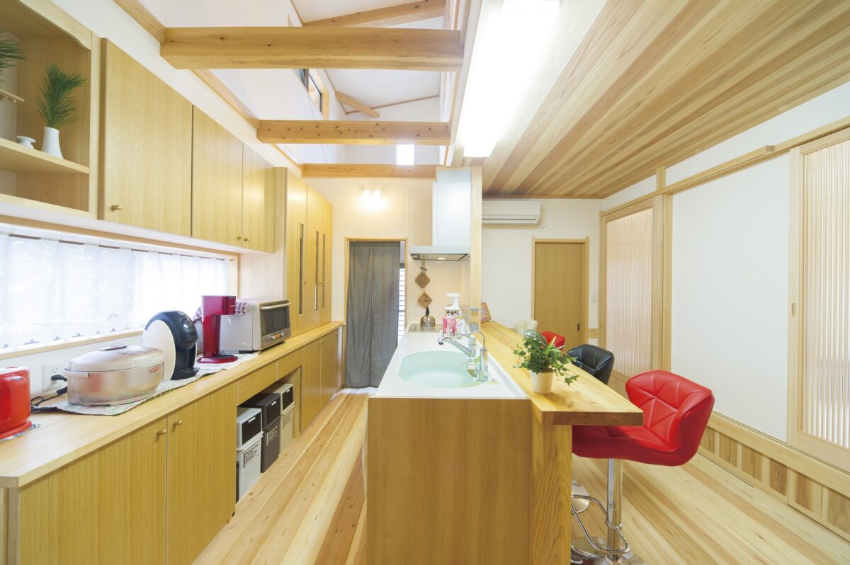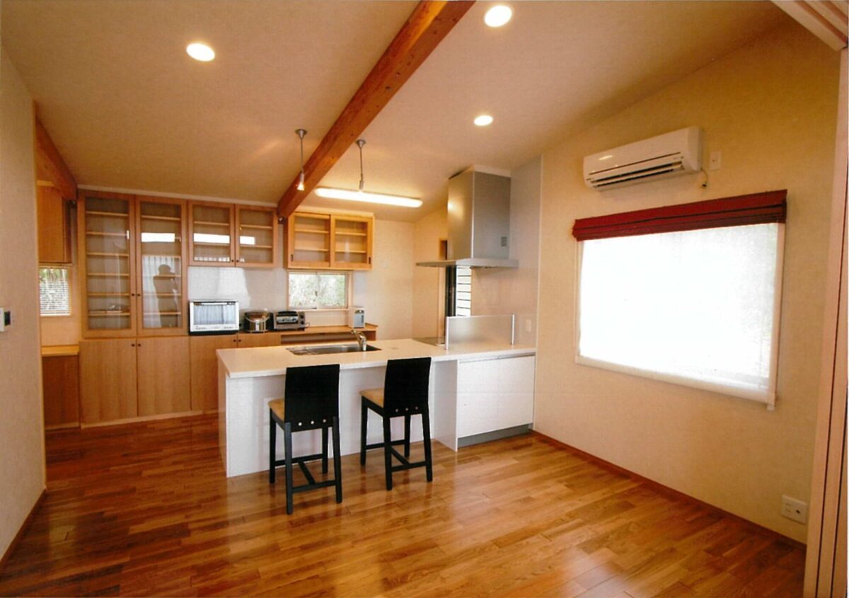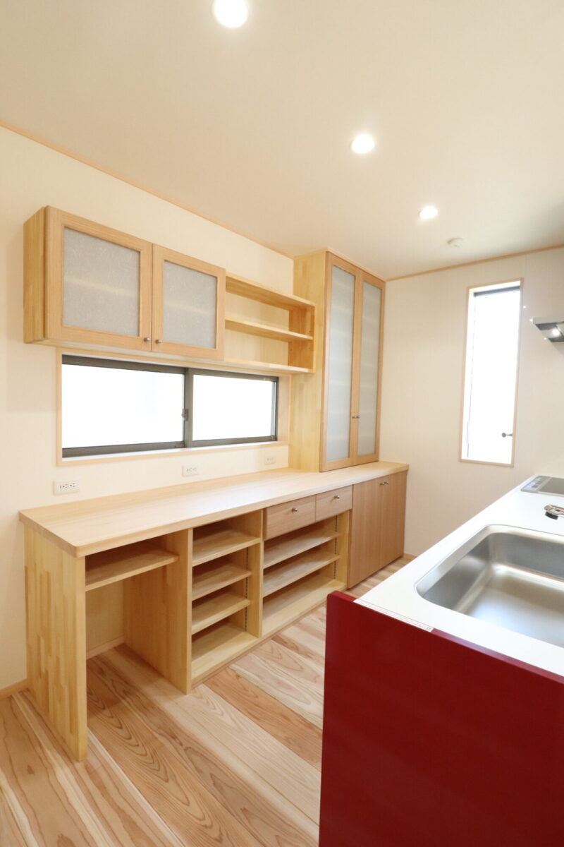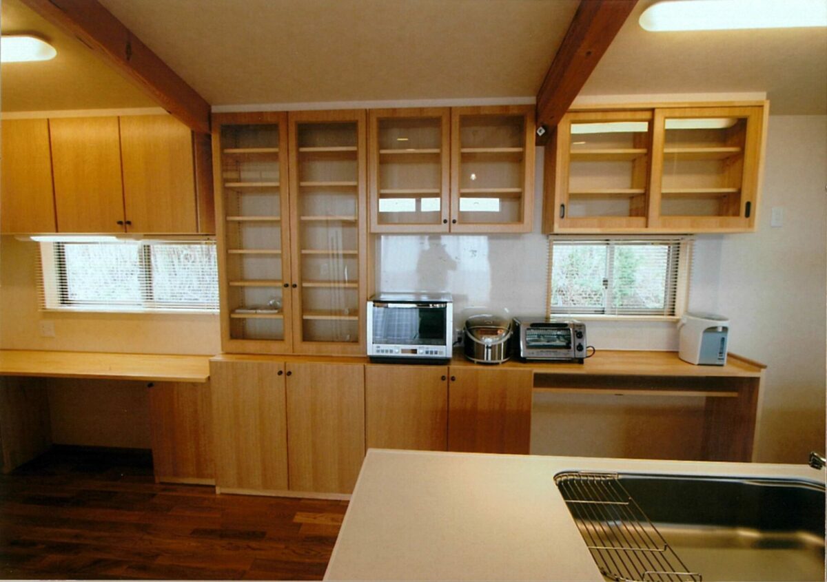 家族の思い出と、経済効果も期待して、お手持ちの食器棚を組み込んで造り付けとしました。