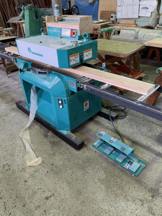 超仕上げカンナ盤という機械で、木材の表面を薄く削って仕上げることが出来ます。