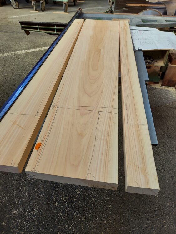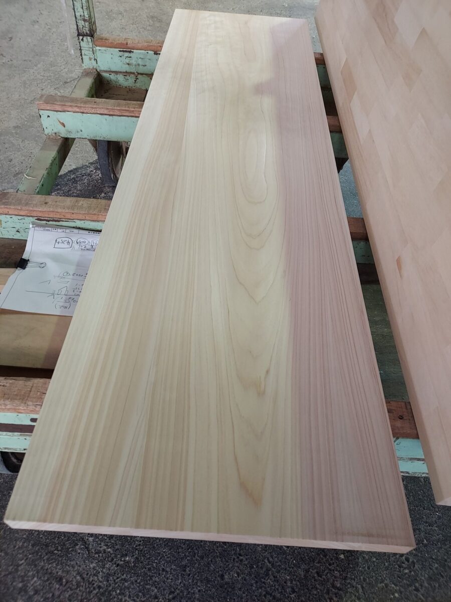 今回は桧材でキッチンのカップボードの天板を作りました。