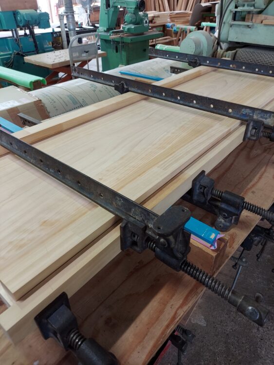 天板を貼って幅広の板を作ることがあります。