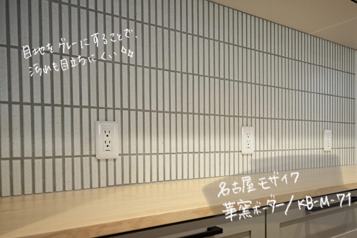 グレージュカラーのタイルが、光の角度でさりげなく表情を変える大人っぽいキッチン