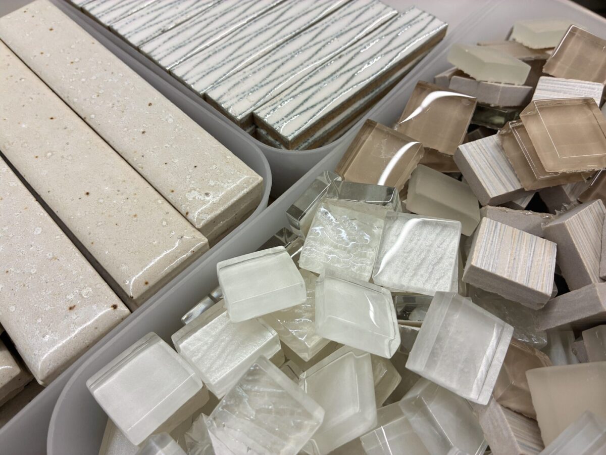 小さなモザイクタイルや長方形のタイルなどを多数ご用意しています。