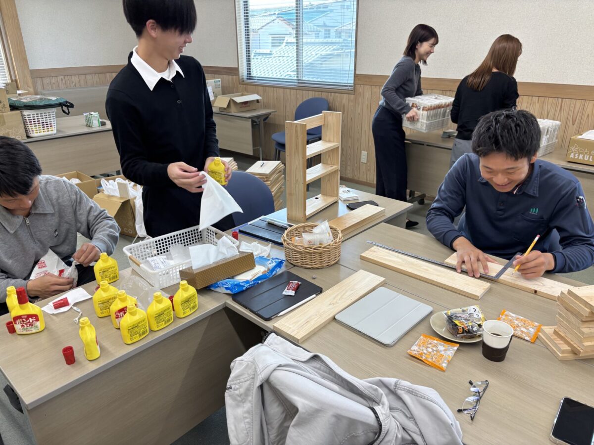 木工キットの確認、作り方説明書の折込準備、上棟体験用ヘルメットを洗ったりと準備もいよいよ終盤です。
