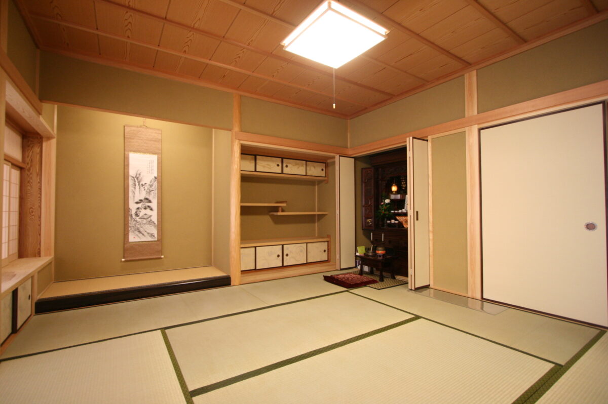 床の間の横にお仏壇置き場を確保しました。事例としては多いです。