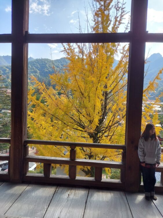 山の紅葉は、まだみたいでしたが豊国神社のイチョウの木は、黄色に、色付いて綺麗でした。