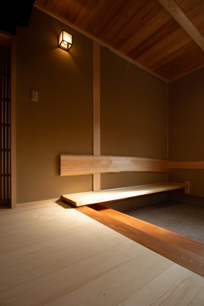 玄関には3〜4人がゆったり座れる広々ベンチを造作✨