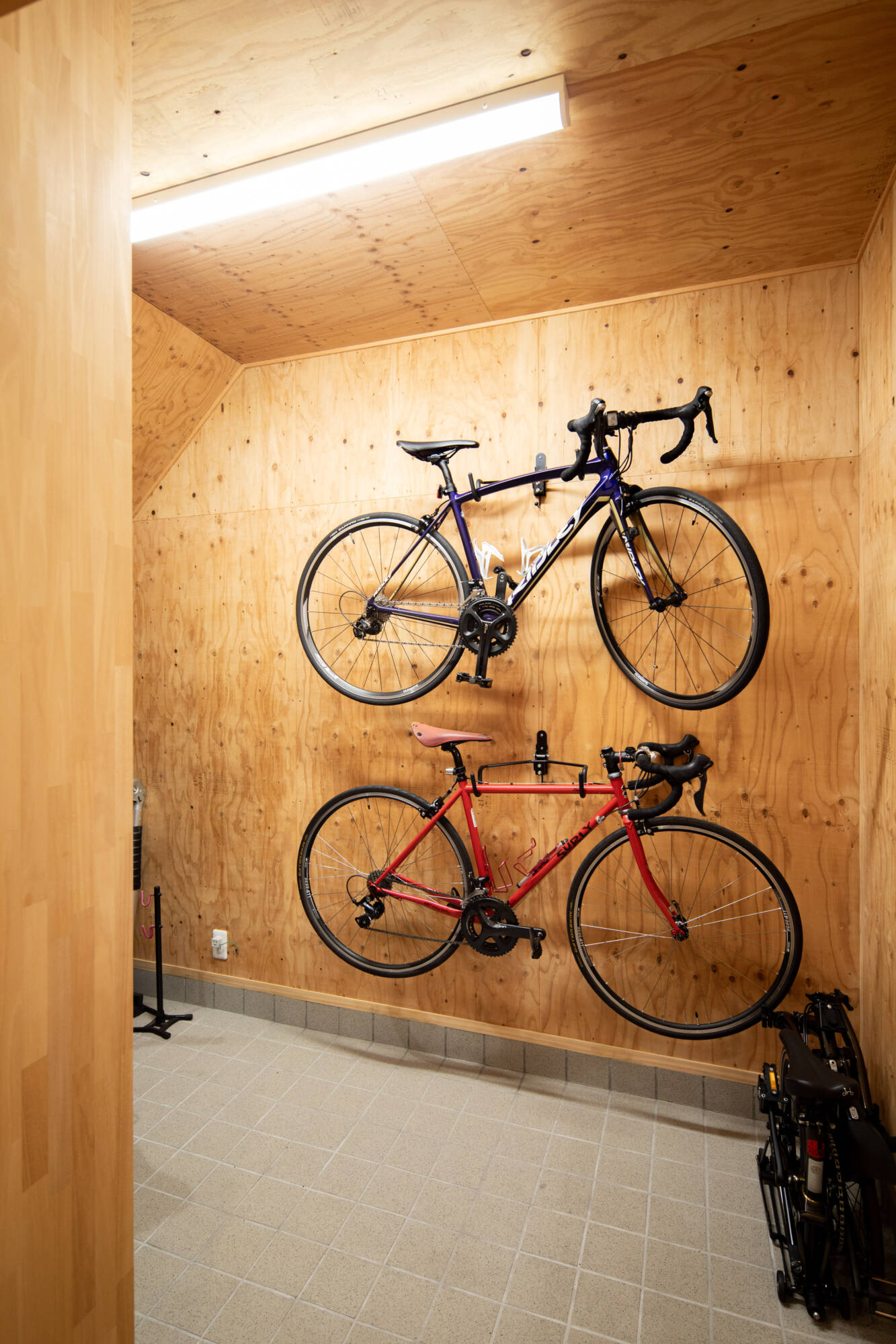 くつの収納はもちろん自転車の収納・整備を一番に考えてつくり上げたスペースです。
