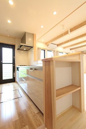 ふんだんに使った自然素材が目にもやさしく、心癒される空間です。 肌触りの良い桧のフローリングが気持ちよくて、つい床に座ってゴロゴロてしまうそうです。