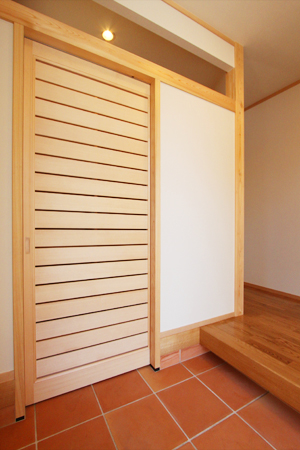 木いっぱいの洋風住宅 #新築 #二階建て #和風 家族全員の趣味であるサッカーやアウトドア用品を収納できる土間収納を設けました。ガス式床暖房を入れて、冬の暖かさ、夏の風通しの良さなど四季に合わせた住まいの工夫がちりばめられている住まいです。 玄関アプローチ 土間収納 趣味のサッカーの靴もたくさん収納できます。 リビング。 テレビを置く壁面に杉板を横目に貼りました。 ダイニング。 子供室 子供室。それぞれの部屋の特徴を壁紙で出しています。 寝室 システムバス。